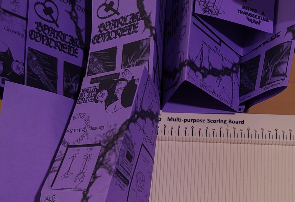 a foldy zine printed on purple craft paper. what it says on the tin! a treatise for boy/butch freaks.